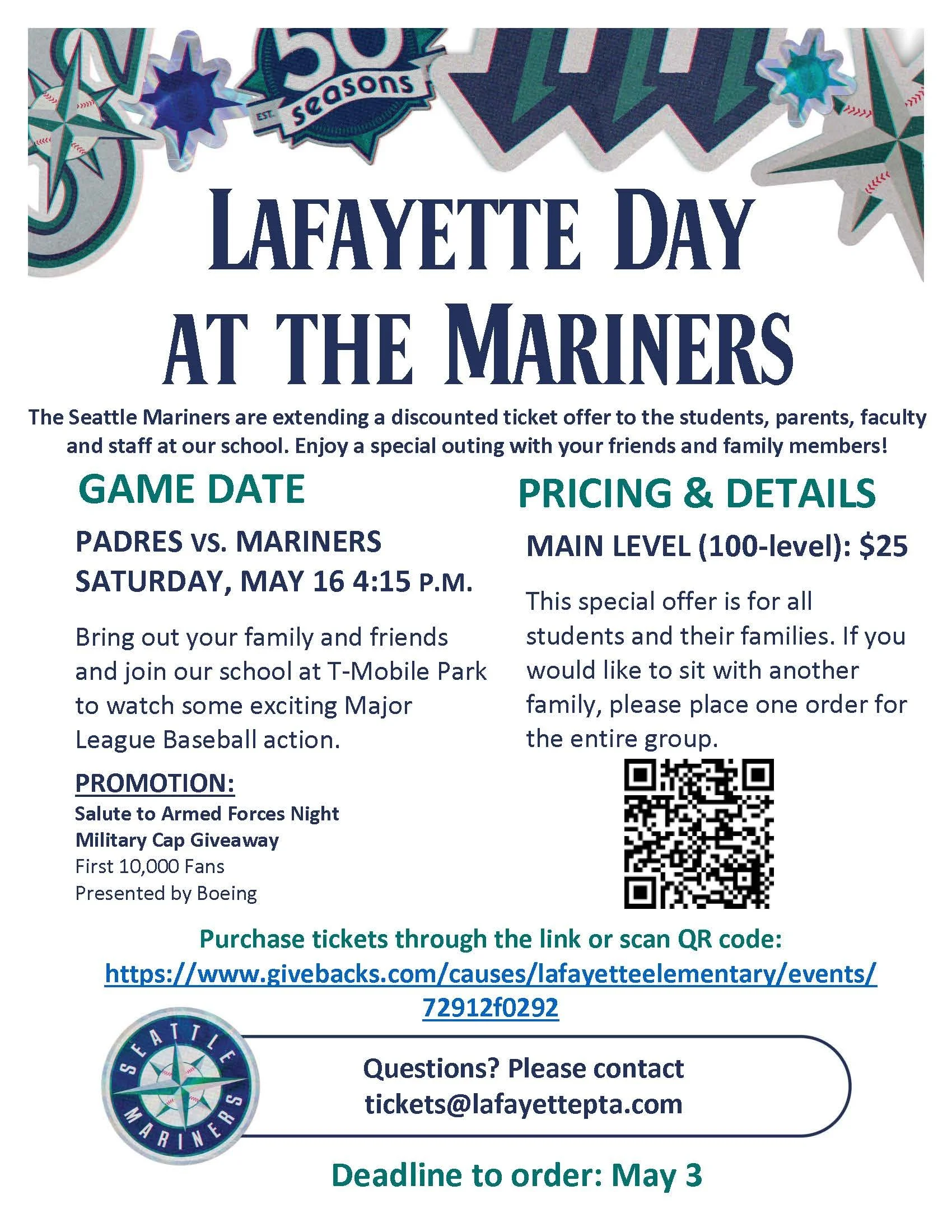 Purchase Tickets Here: Givebacks - Lafayette Day at the Mariners
