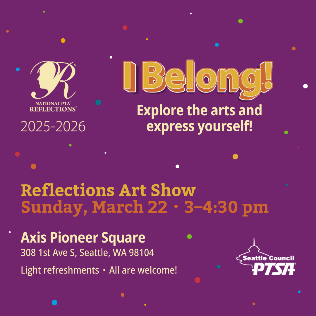 Come celebrate 95 students from 14 Seattle Public Schools at Axis Pioneer Square! View student artwork inspired by this year’s theme, “I Belong.”